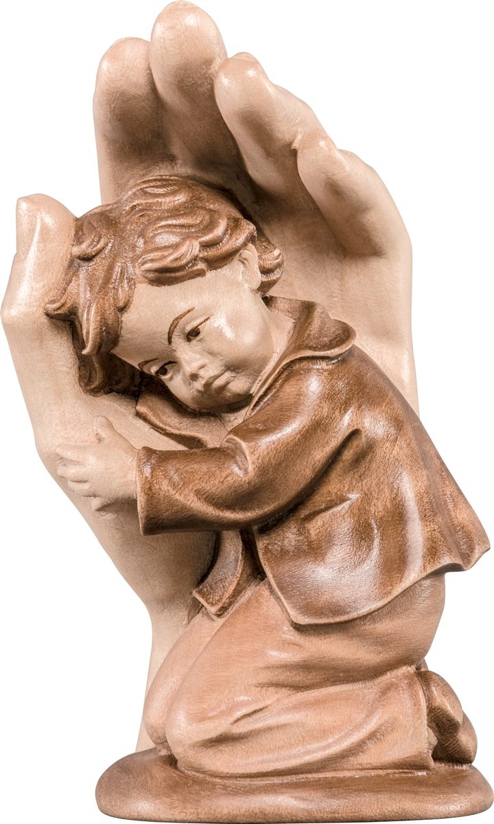 Schützende Hand stehend mit Junge mehrfach gebeizt