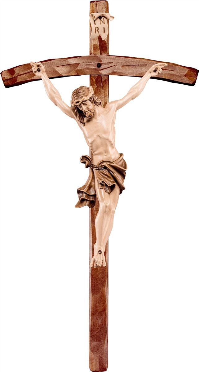 Alpenchristus rot mit gebogenem Kreuz 3fach gebeizt