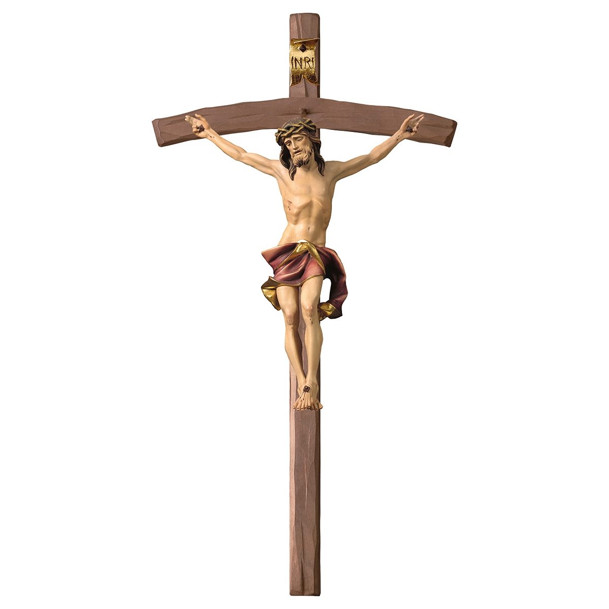 Kruzifix Nazarener mit gebogenem Kreuz koloriert rot
